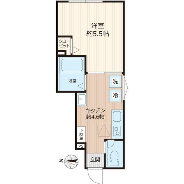 | 間取り | 1K(K4.6 洋5.5) | 主要採光面 | 北 |